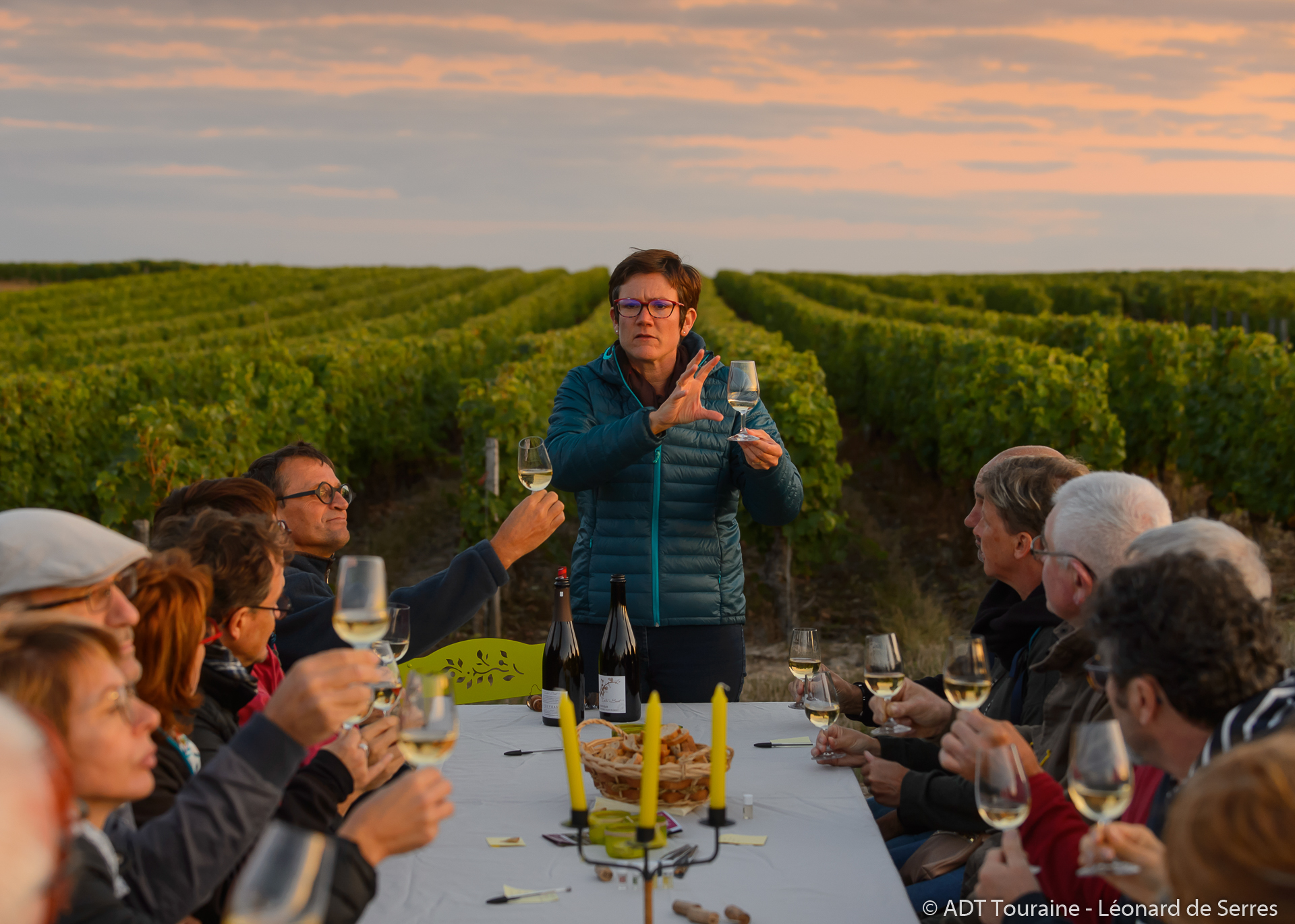 Nous ferons ensuite une pause gourmande au milieu des rangs pour une dégustation commentée de cinq vins de Loire. Chaque vin sera accompagné d’ardoises de mets soigneusement accordés, constituant l’équivalent d’un apéritif dînatoire : inutile donc de prévoir un repas à votre retour !