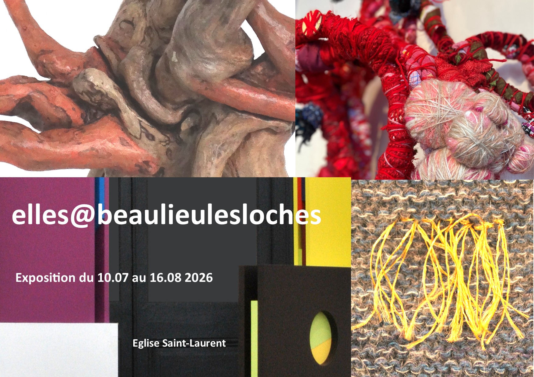 Dans l’église désacralisée Saint-Laurent, à Beaulieu-lès-Loches, Petite Cité de Caractère, cette exposition dépasse la simple juxtaposition d’œuvres. Elle réunit 4 artistes qui partagent une même attention à la matière, comme vecteur d’émotion, de mémoire et de pensée, tout en cultivant des écritures plastiques singulières. Leur dialogue se construit autour de matières naturelles ou transfigurées – fils, bois, racines, pigments, laine, tissus récupérés, volumes picturaux – qui deviennent autant de passerelles entre geste, nature et perception. L’expérience prend une forme immersive : installations sensorielles de Judith Vittet et Martine Dubois, volumes colorés d’Aline Decrouez, sculptures sous tension de Monina. chacune propose une manière d’habiter l’espace et de le faire vibrer le lieu avec ses voûtes romanes, sa lumière filtrée et son caractère désacralisé. Il joue un rôle essentiel. Il accueille, révèle et amplifie les œuvres, créant une résonance entre architecture ancienne et propositions contemporaines. l’ensemble invite à un parcours contemplatif. Une promenade intérieure s’y dessine, faite de correspondances sensibles et de dialogues silencieux. En réunissant ces quatre voix artistiques, l’exposition compose une véritable polyphonie visuelle et sensorielle. Chaque œuvre trouve sa place dans une harmonie globale, engageant le visiteur dans une expérience qui interroge la matière autant qu’elle révèle la relation profonde entre art, espace et perception.