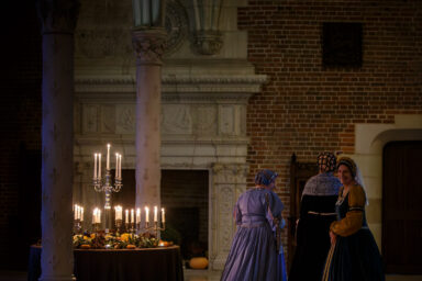 Au cœur des festivités, la comédienne Pierrette Dupoyet incarne Léonard de Vinci et partage des récits vivants sur les moments clés de sa vie. Elle raconte son arrivée à Amboise, ses relations avec François Ier, les projets qu’il a réalisés au Clos Lucé, tout en évoquant avec tendresse sa vie en Italie. En parallèle, la scénographe Marjolaine Bougrier Vaucelles métamorphose les salles du château, parsemant les lieux de ses compositions florales. Un majestueux sapin trône dans la salle de réception, les feux de cheminée crépitent chaleureusement, apportant une atmosphère conviviale. Les tables, garnies de gourmandises inspirées des traditions d’époque, invitent à un festin visuel. Dans la chapelle d’Anne de Bretagne, une crèche ornée de santons du XIXe siècle ajoute une touche de charme historique, transportant les visiteurs dans la magie d’un Noël authentique et raffiné.