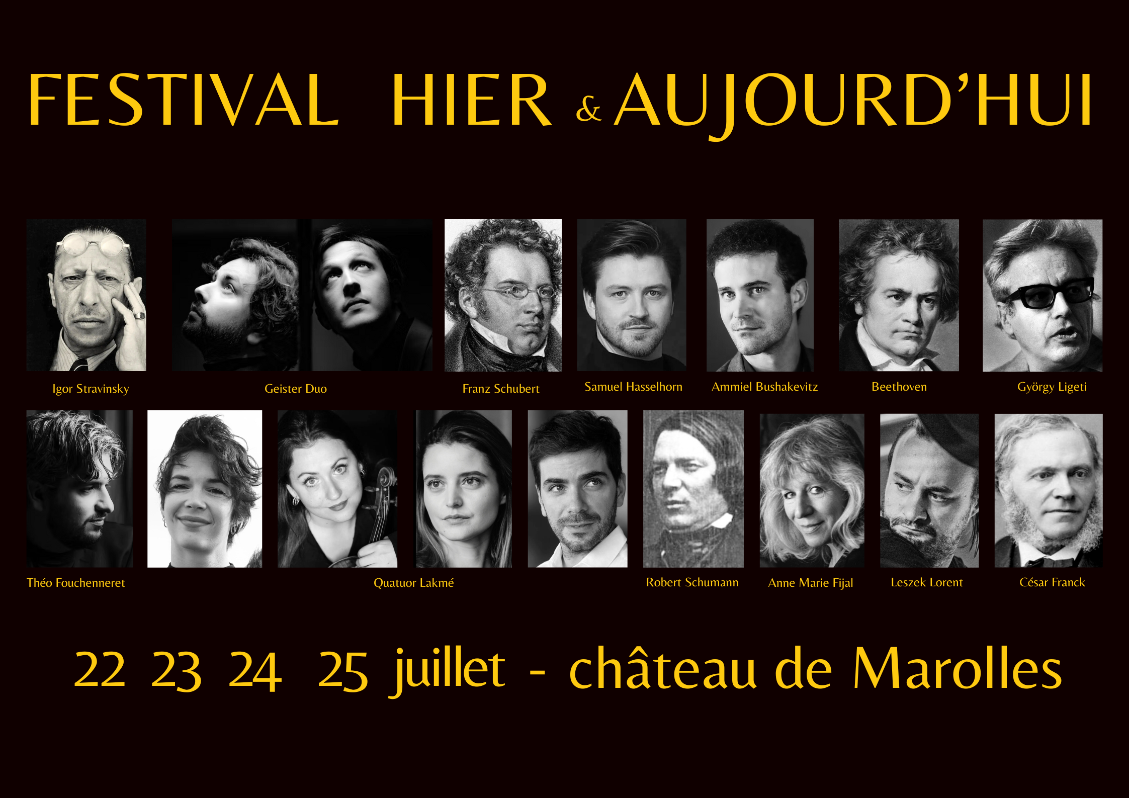 Cette année les œuvres de György Ligeti, Igor Stravinsky et Anne Marie Fijal côtoient celles de Beethoven, Brahms, César Franck, Schumann et Schubert.