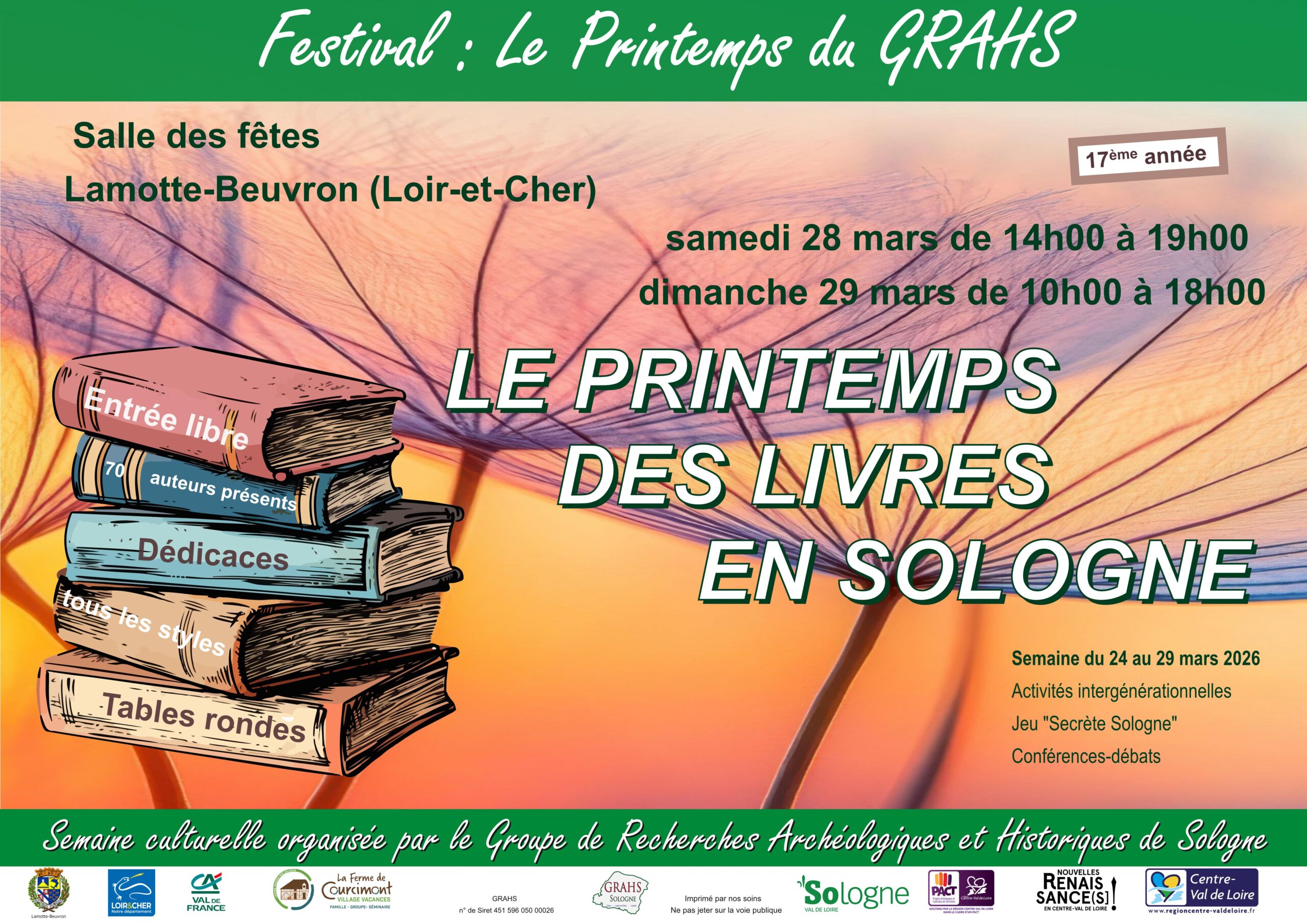 Le Printemps du GRAHS : Semaine culturelle du GRAHS à Lamotte-Beuvron du 24 au 29 mars 2026 – Salon régional du livre le week-end