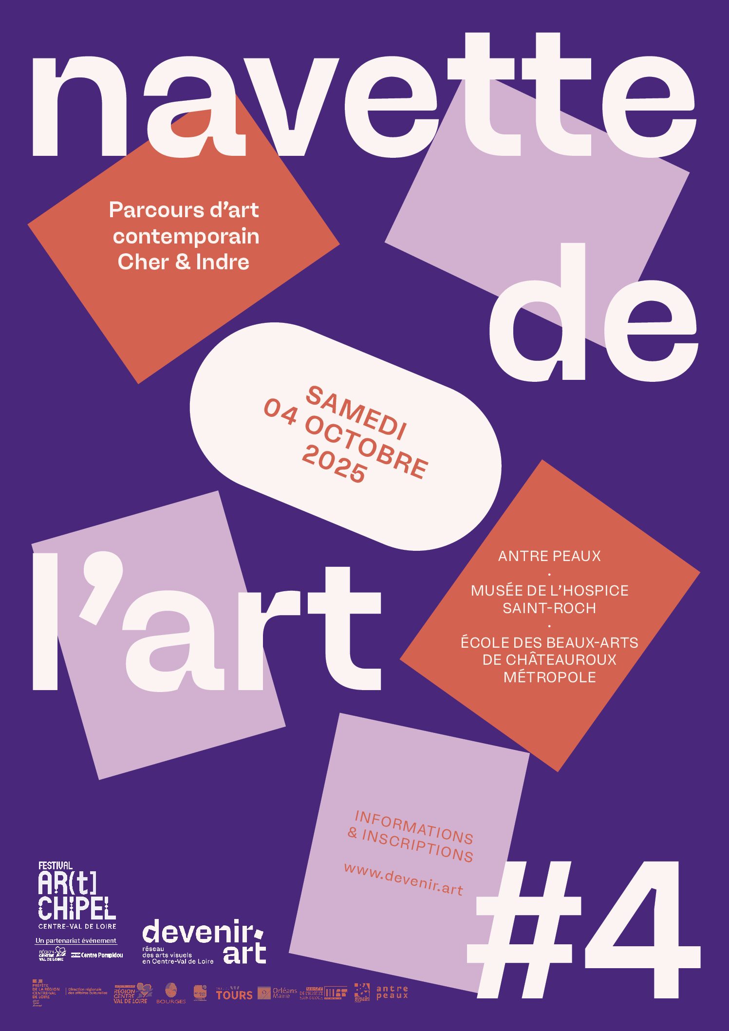 Curieux, curieuses, embaquez avec nous le samedi 4 octobre pour un itinéraire en bus dans l’Indre et le Cher, en partenariat avec le festival AR(t]CHIPEL. Au départ de Bourges, cette navette vous conduira à l’Antre Peaux, au Musée de l’Hospice Saint-Roch et à l’École des Beaux-Arts de Châteauroux Métropole.